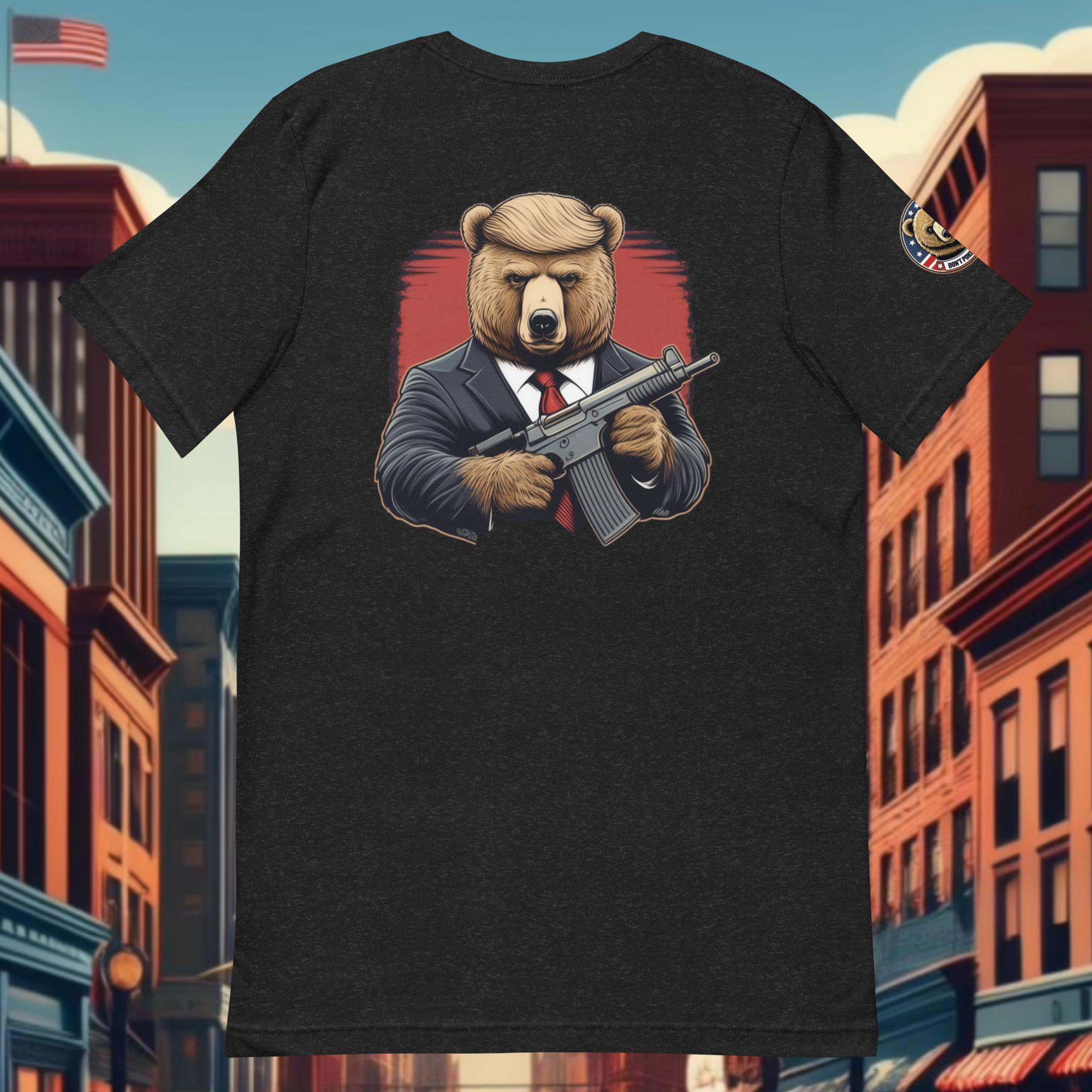 "Roar for the Red, White, and Bear! This limited edition tee features a legendary bear armed and ready to defend freedom."